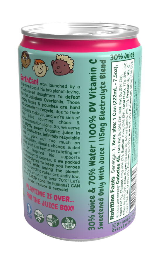 *NEW* EarthCan! - GRAPE - Organic Juice - 10PK of 7.5oz Plastic-Free Aluminum Cans