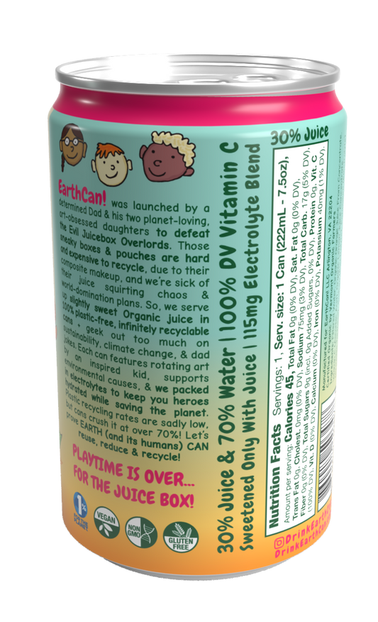 *NEW* EarthCan! - ORANGE - Organic Juice-> 10PK of 7.5oz Plastic Free Aluminum Cans