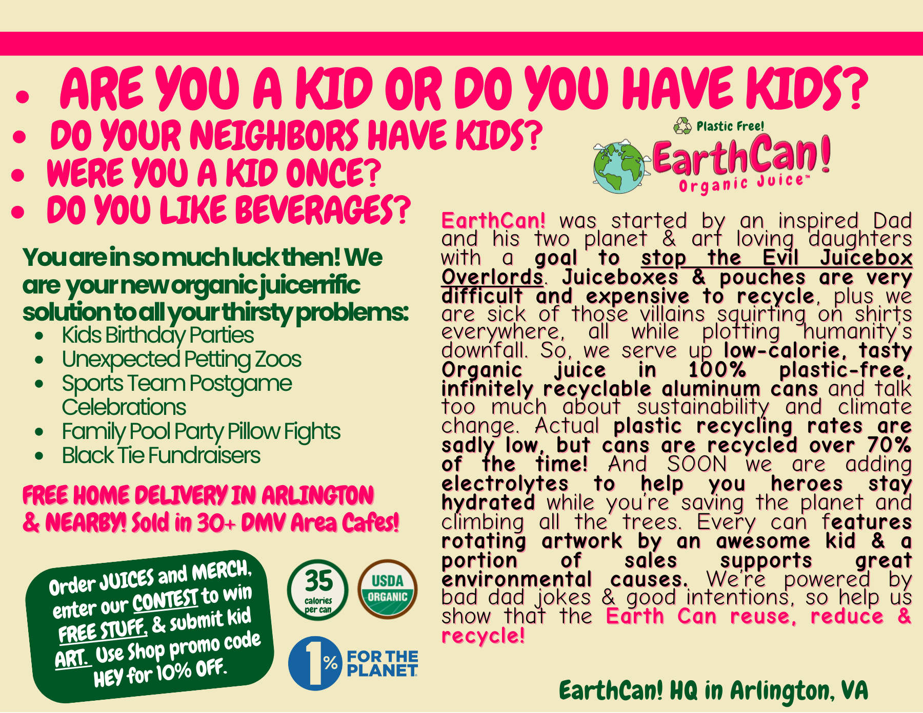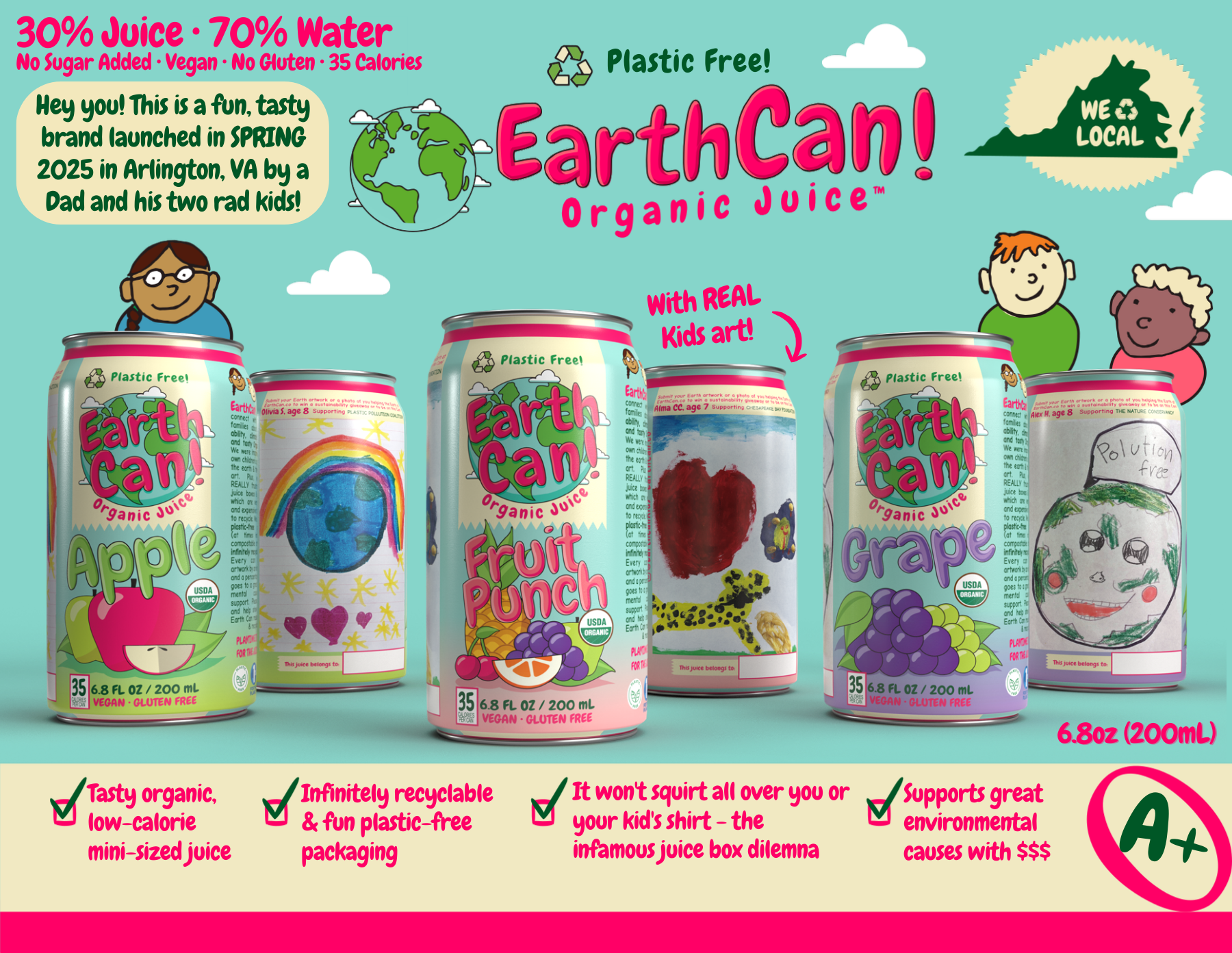 EarthCan! Organic FRUIT PUNCH Juice - 12PK of 6.8oz / 200mL Plastic-Free Aluminum Cans